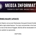 Michael Scotto: Scottie Barnes has been diagnosed with a right orbital fracture and will be re-evaluated in three weeks, Toronto Raptors say. … [Read more...] about Scottie Barnes out at least three weeks