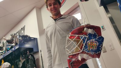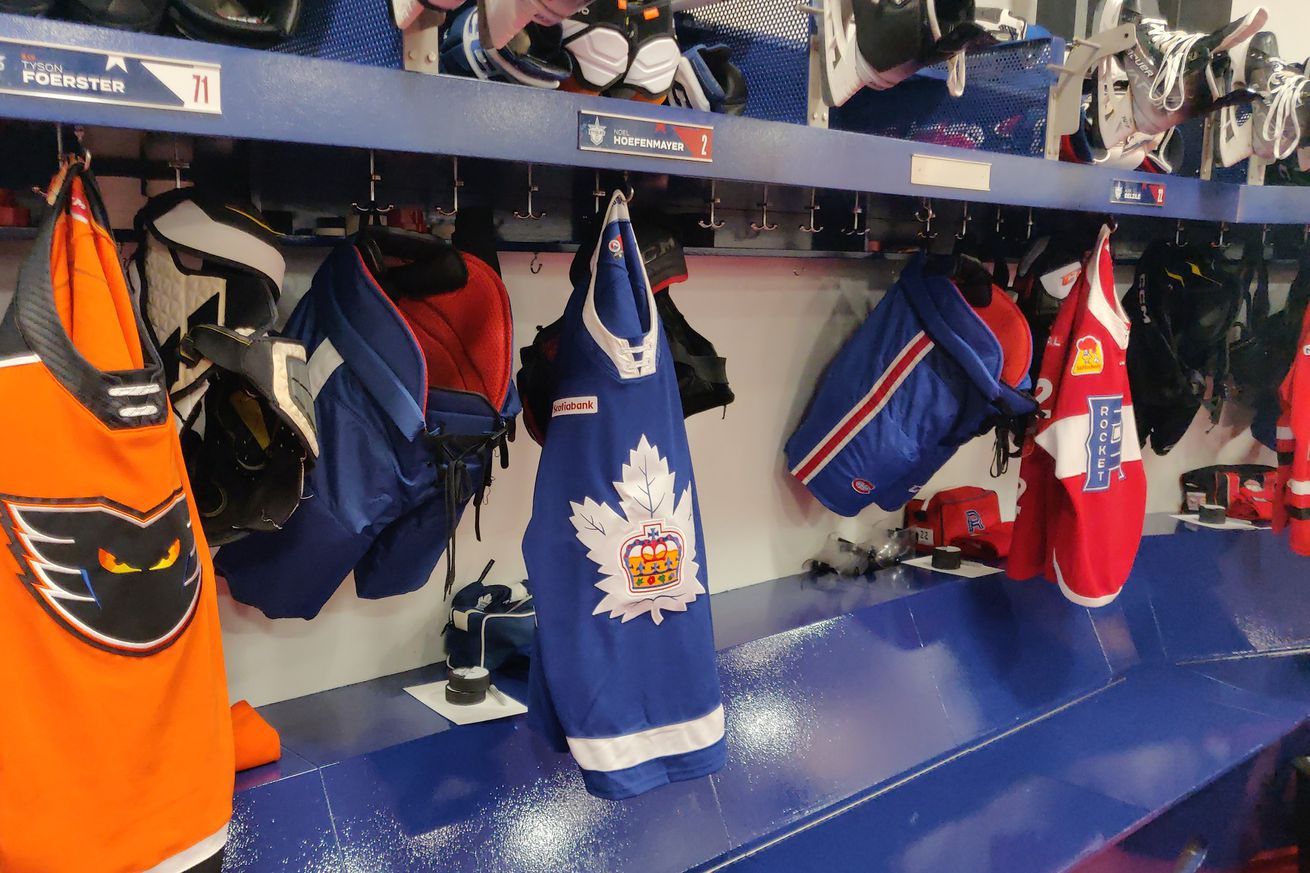 Joseph Woll had a custom set of pads for the game, plus a new red mask I really liked with the Marlies logo on one side and AHL on the other.