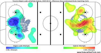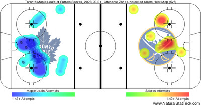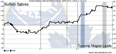 Score was 4-0 Leafs, and the Sabres had eight Shots on Goal. They had the puck some, and shot it some, but not well: