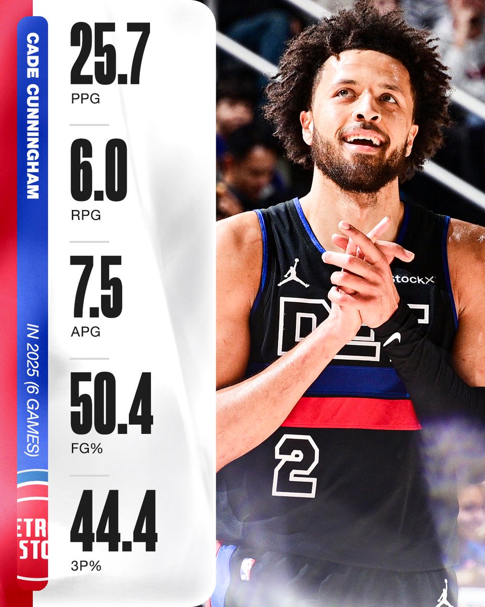 Cade and the Pistons are off to a strong start in 2025 🤩 pic.x.com/Qons0OFC77 – 4:49 PM