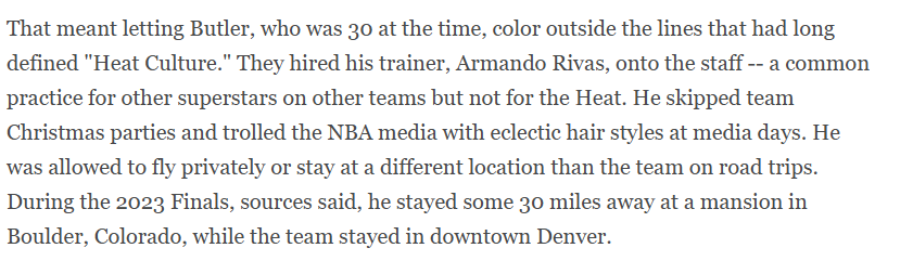 If history — like, say, in Minnesota in 2018 — serves as precedent, the discomfort could deepen, quickly. “Jimmy hasn’t even really started,” said one source close to Butler. Spoelstra knew all of that as he politely declined to discuss Butler’s situation. Of course he knew. Everyone on the team knew how much was still unresolved and how much uglier this could get. -via ESPN / January 17, 2025